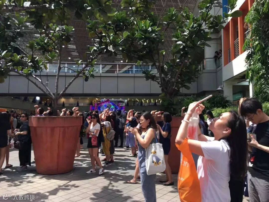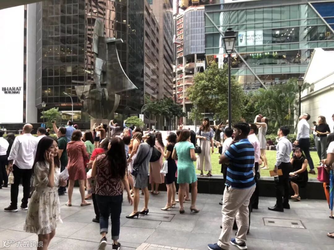 街上挤满了驻足抬头观景的路人,它在新加坡出现极为罕见。发生在新加坡的概率有多大?仅为0.0001%