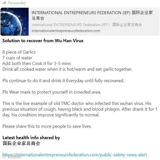 你可能已经在Facebook或你的WhatsApp群里看到过这样的 "疗法 "流传着,其中暗示用八瓣大蒜加水煮成的汤可以 "治愈 "新冠病毒。