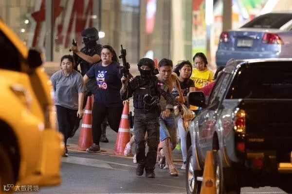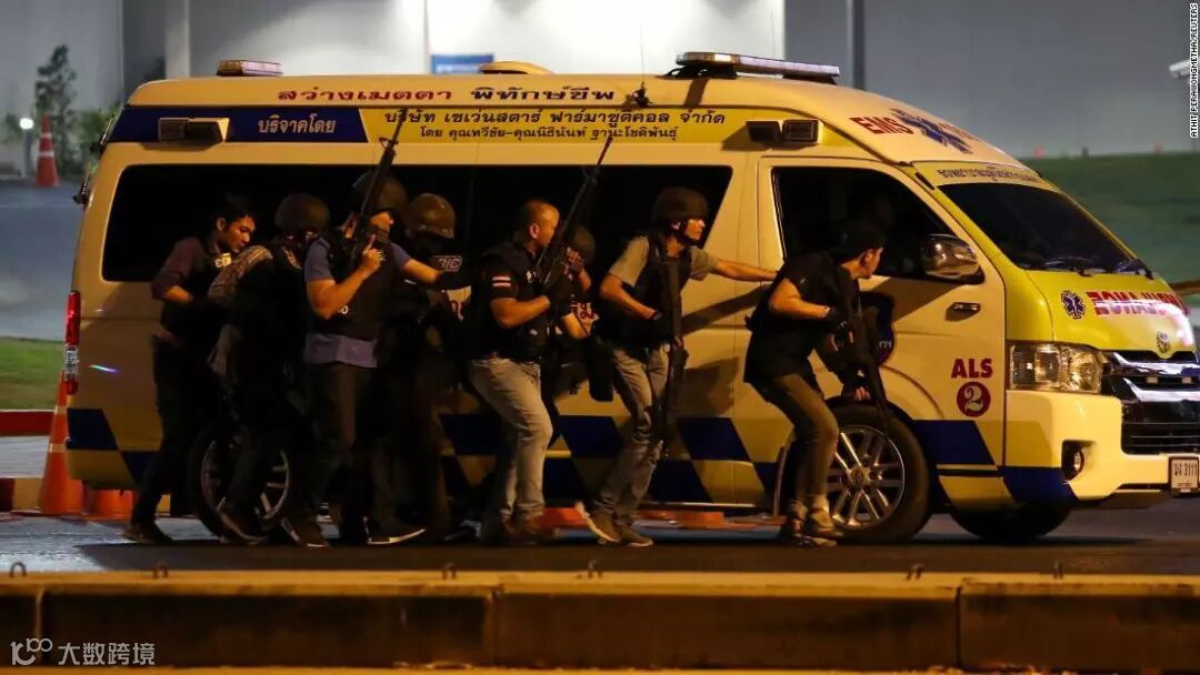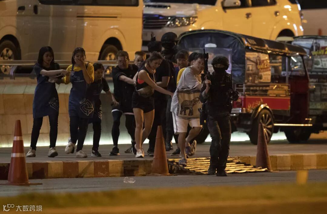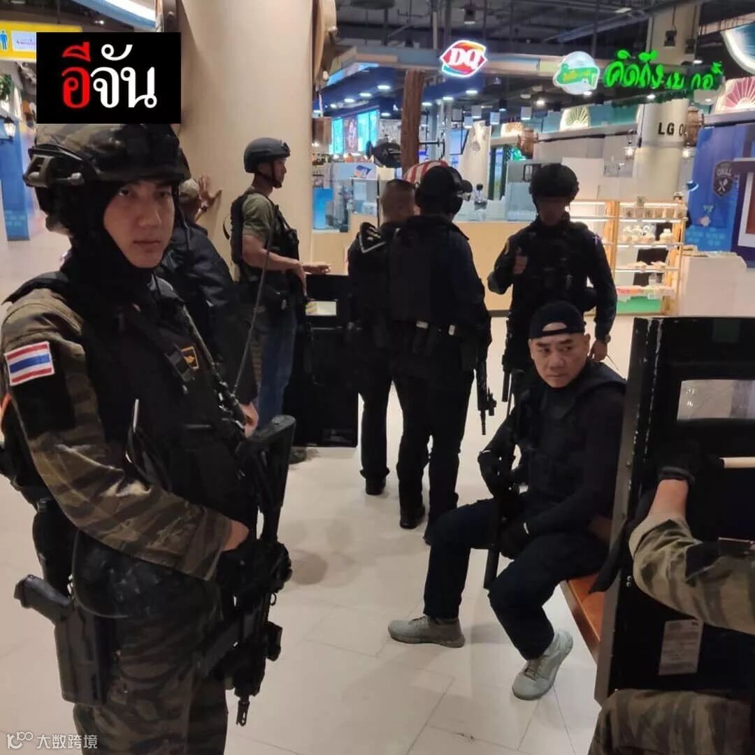 在购物中心发生对峙后,警方保卫了商场并封锁了周边道路,还从60英里之外的猜耶蓬省(Chaiyaphum)找来枪手的母亲与之进行谈判。