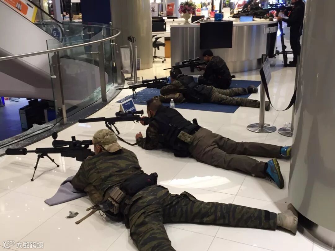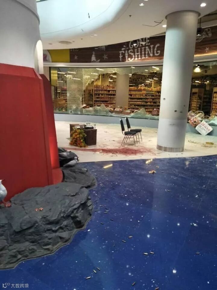 枪手到达购物中心后引发大规模人群骚乱