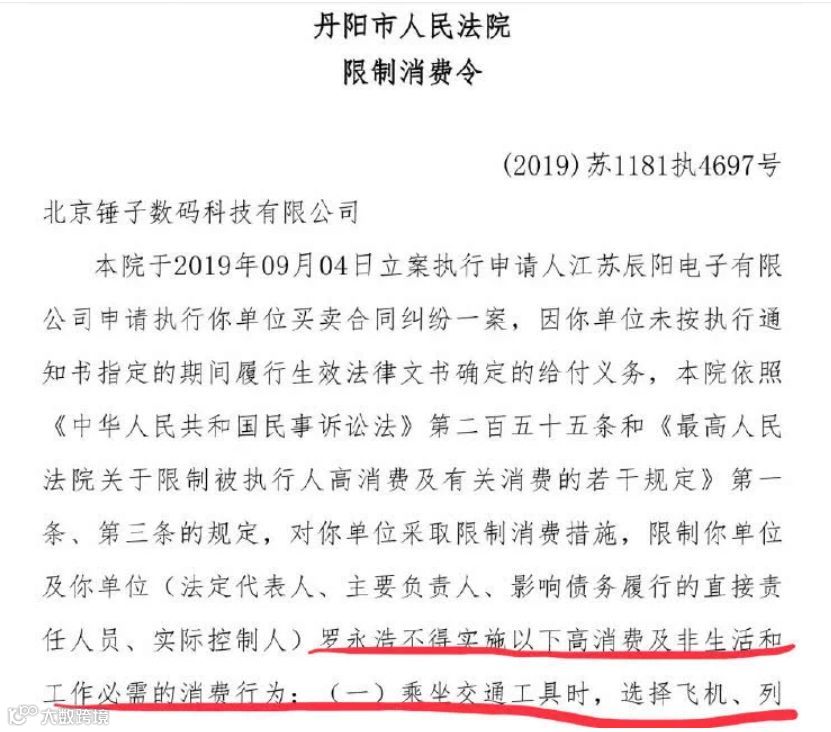 前段时间,罗永浩被丹阳市人民法院下发了限制消费令。一时间,“情怀”老罗变成了“老赖”老罗。