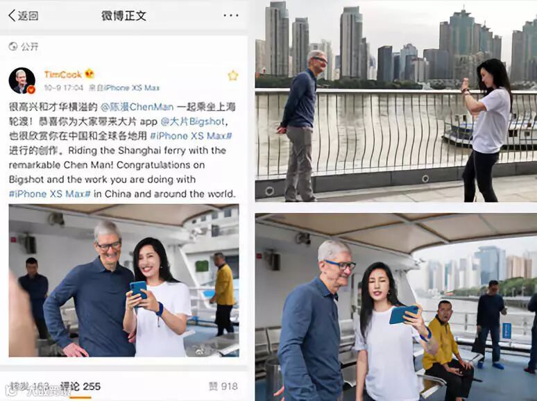 陈漫曾在2018年Apple CEO到访上海时候,作为Bigshot App的主编,对Tim Cook进行了采访。