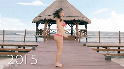 以下是网上盛传性感女模100s展现比基尼进化史的视频截图▼