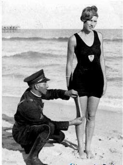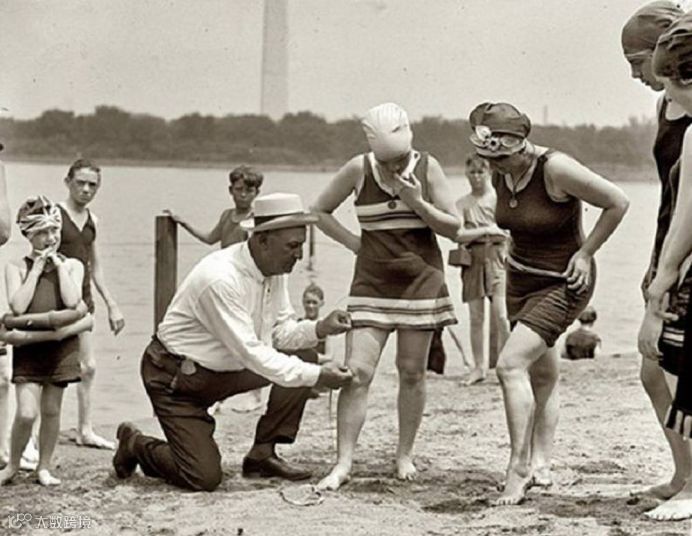 20世纪20年代,美国当时的公共管理措施有一项,禁止女性穿着超过膝盖6英寸的泳衣。
