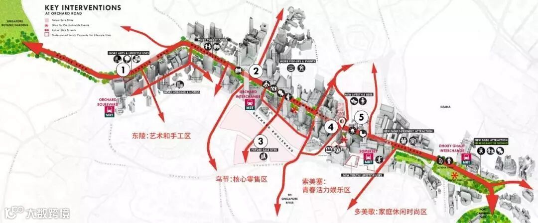 在乌节路计划当中,未来的乌节路将通过不同体验,进一步凸显不同地区——东陵、乌节、索美塞和多美歌的独特个性。