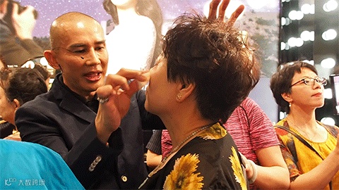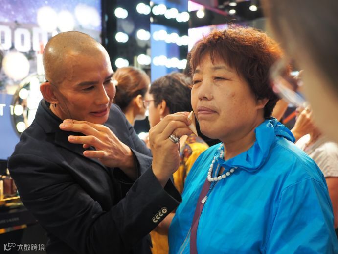 爱美之心人皆有之,精致的妆容吸引了众多阿姨们驻足围观,纷纷前来尝试。