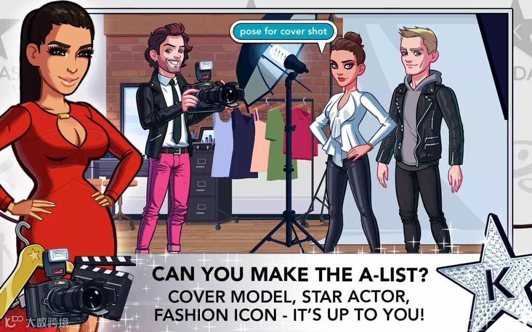 玩家可以跟着游戏中的卡戴珊完成任务,轻松实现从18线网红变成一线巨星的梦想。