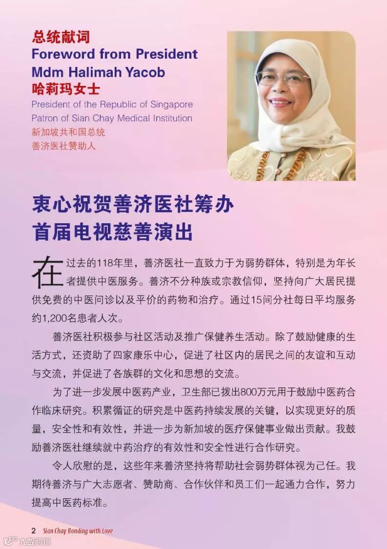 善济医社118年来第一次举办电视筹款,善济医社赞助人,新加坡总统哈莉玛担任主宾。
