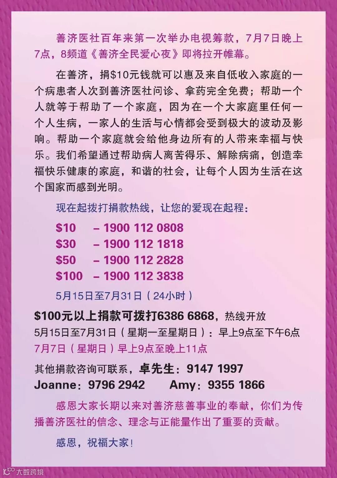 感恩社会大众和媒体朋友们对百年善济第一次举办电视筹款晚会《善济全民爱心夜》的热心支持,感恩大家长期以来的付出,为传播善济医社的信念、理念与正能量所作出贡献。