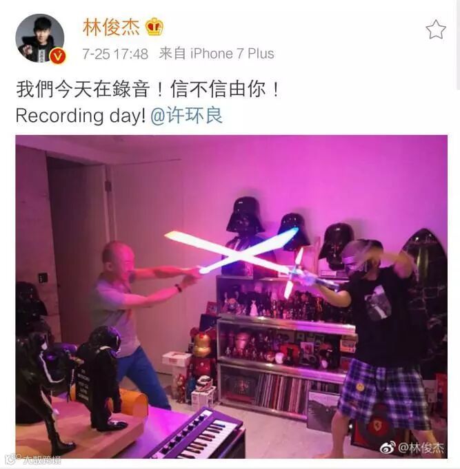 录音期间,他也不忘和朋友一起疯玩,差点变身星际大战片场。