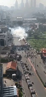 22日晚上,大批的示威群众在雅加达的市中心各大主要干道继续示威游行,焚烧汽车轮胎等,印尼军警严阵以待。