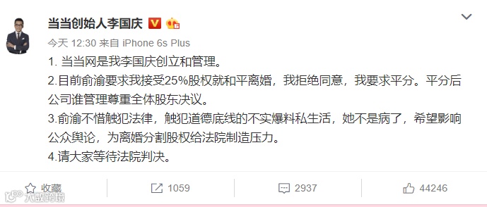 然鹅,两人都是强势性格,一把椅子两个屁股,夫妻二人觉得挤得慌。于是,为了争夺当当第一掌门人,夫妻二人从暗到明:开撕!