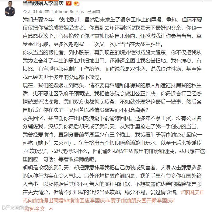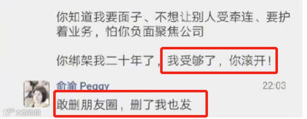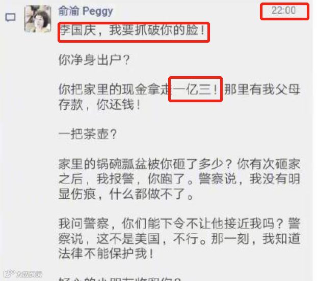 10月23号晚上10点,俞渝在李国庆的朋友圈下放出猛料,开门见山地写道:李国庆,我要抓破你的脸!