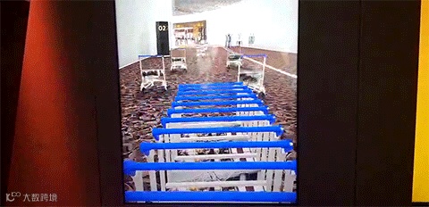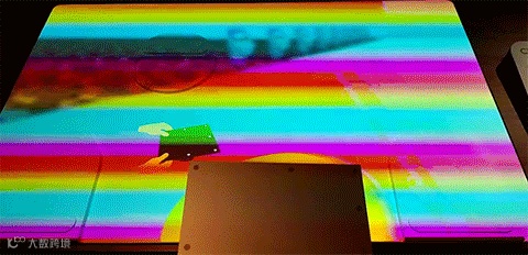 将游客指南放在红色区域上方,便会显示出这个区域对应的乐器名称。垂直向上移动指南便是升高音符,向下移动便是降低音符。每个区域对应不同的乐器,几个人一起演奏,便是一场丰富的交响乐!