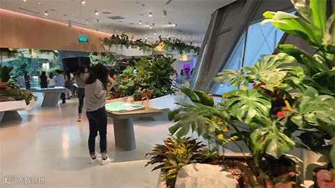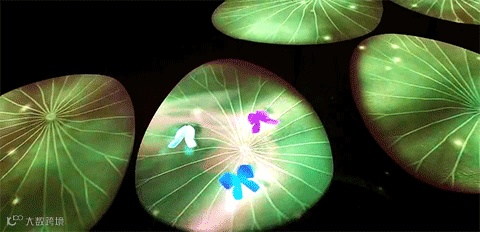 这个“电子花园”入口是一片荷塘,上演着最动人的荷塘月色。荷叶上停落着蝴蝶,用手轻轻触碰荷叶,蝴蝶便会纷纷飞起。