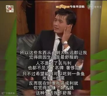 在节目采访中,周润发说:“人不是为了名与利,也不是为了名牌、奢侈品,只不过希望能够可以吃到一条鱼,吃到一些菜……”