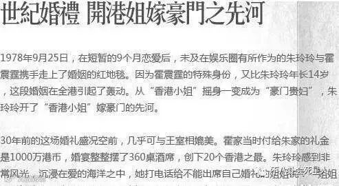 朱玲玲和霍震霆的婚礼在当时轰动一时,开创了港姐嫁豪门的先河。