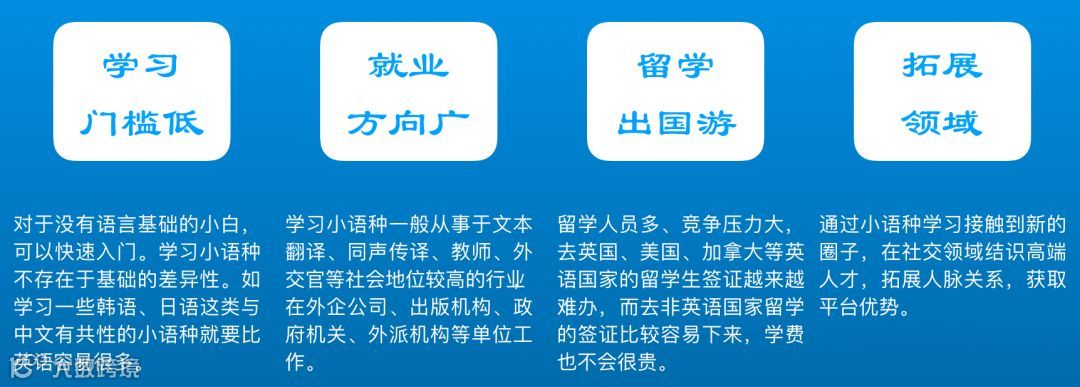 不妨试试我们给出的解决方案,必须强调的是,我们的9门小语种课程全部无偿分享,而且保质保量。