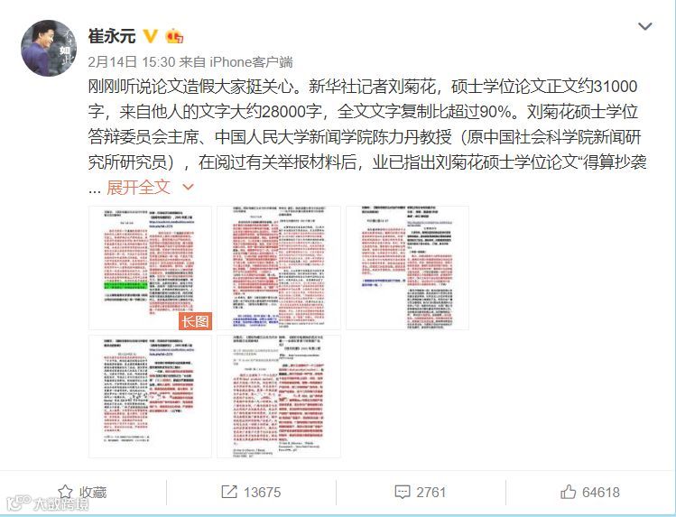 崔永元微博主页的最新一条动态停留在今年2月