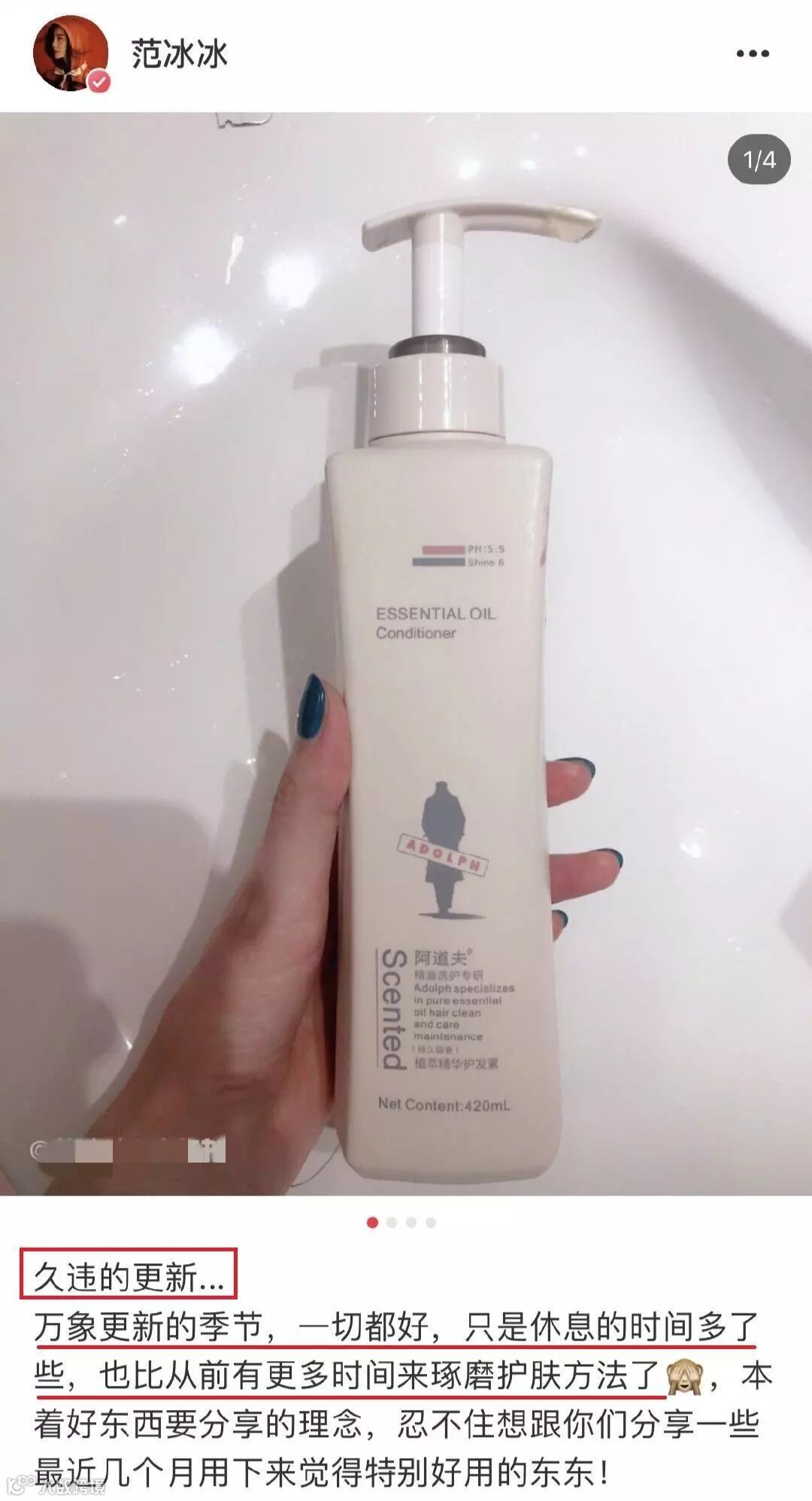 之后范冰冰又在某平台分享护肤心得并透露 “万物更新的季节,一切安好!”、“下节课再见”。