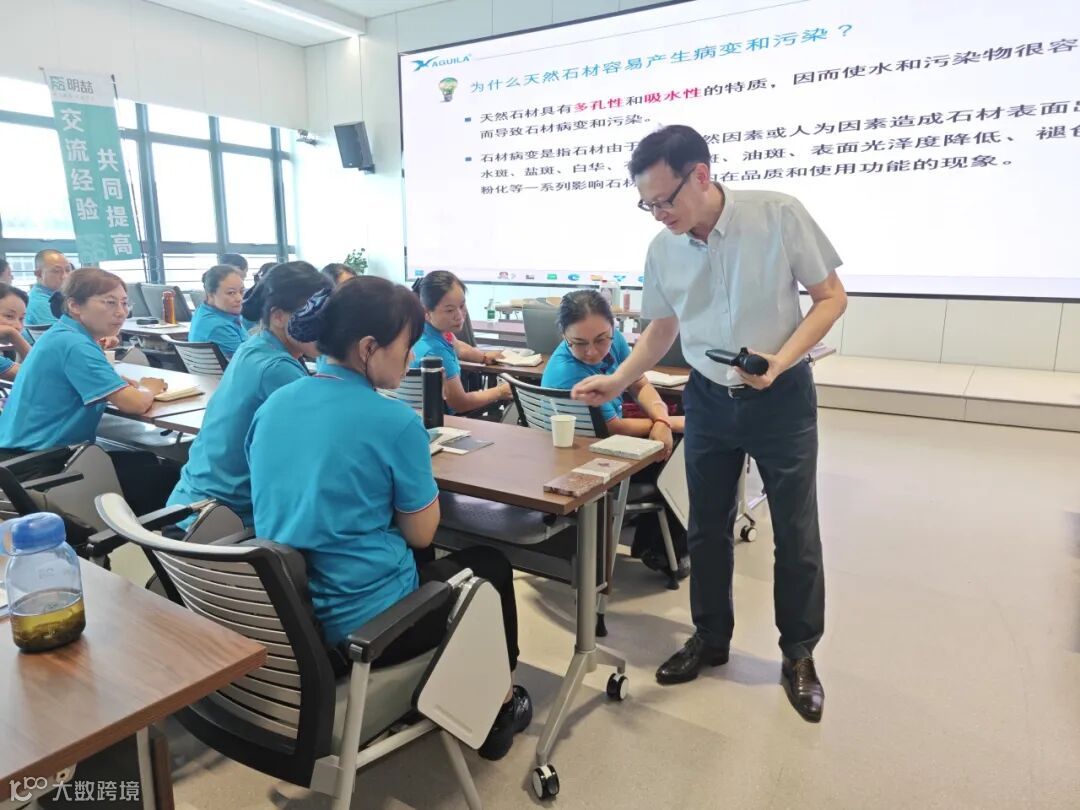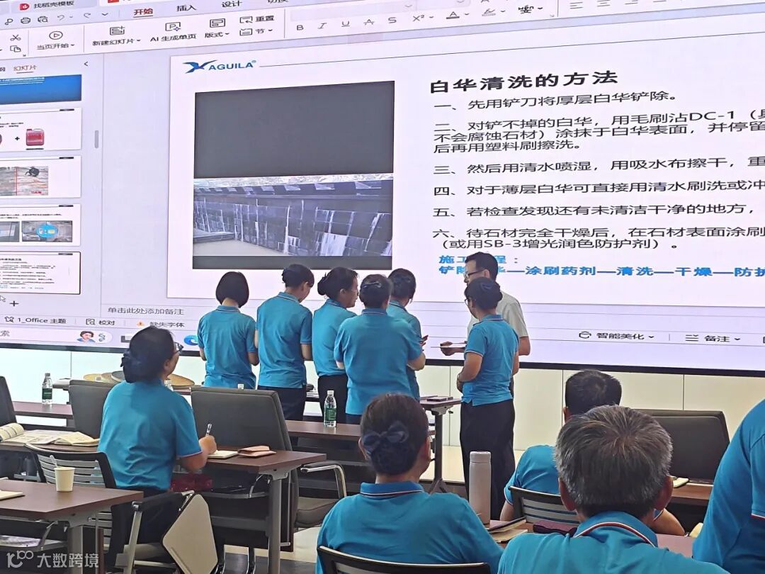 为帮助大家突破技术瓶颈,提高工作效率,陈老师向大家推介了阿古拉最新研发的产品,使大家对石材护理和设施维护有了崭新的认识,从而为实现降本增效找到新的方法和路径。课堂上,学员们与陈老师互动频繁,学习氛围热烈。