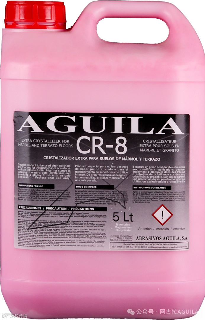 石材翻新之后,等石材的湿度下降到5%以下就可以做结晶了。首先使用石材除碱结晶剂进行打底,这样可起到预防返碱的作用,然后再使用石材晶面剂进行叠加,以增加石材的亮度和润度。
