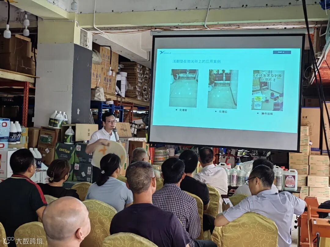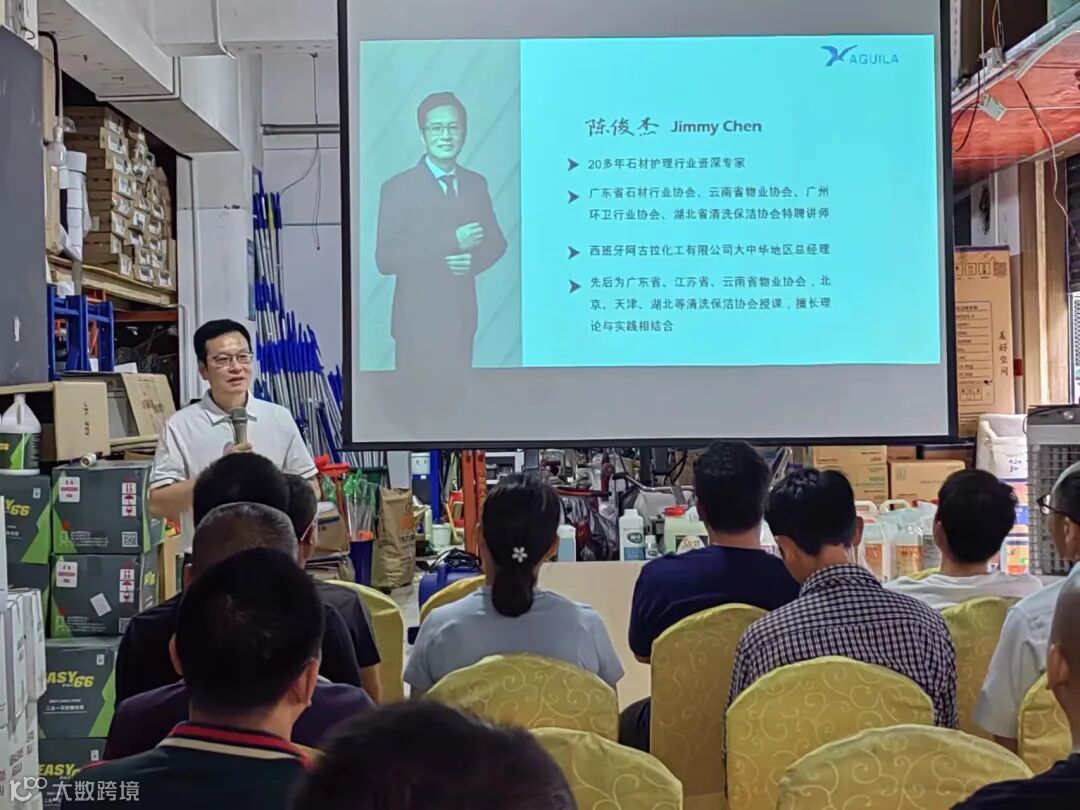 陈老师以他将近30年的从业经历和积累,向学员们传授石材护理知识,通过案例分析了石材的病变和污染问题,提供了问题解决方法,并向大家介绍了阿古拉最新研发的产品,帮助大家突破技术瓶颈,提高工作效率,从而实现降本增效的目标。