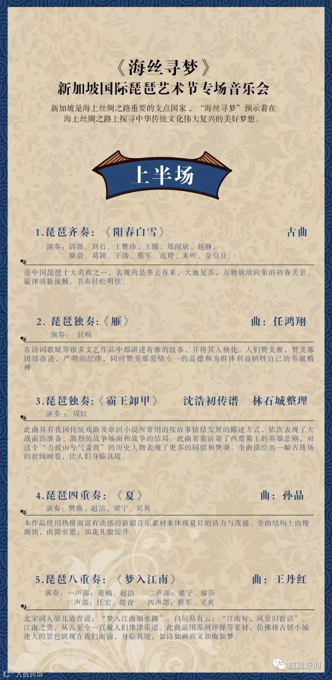 《海丝寻梦》新加坡国际琵琶艺术节专场音乐会节目单
