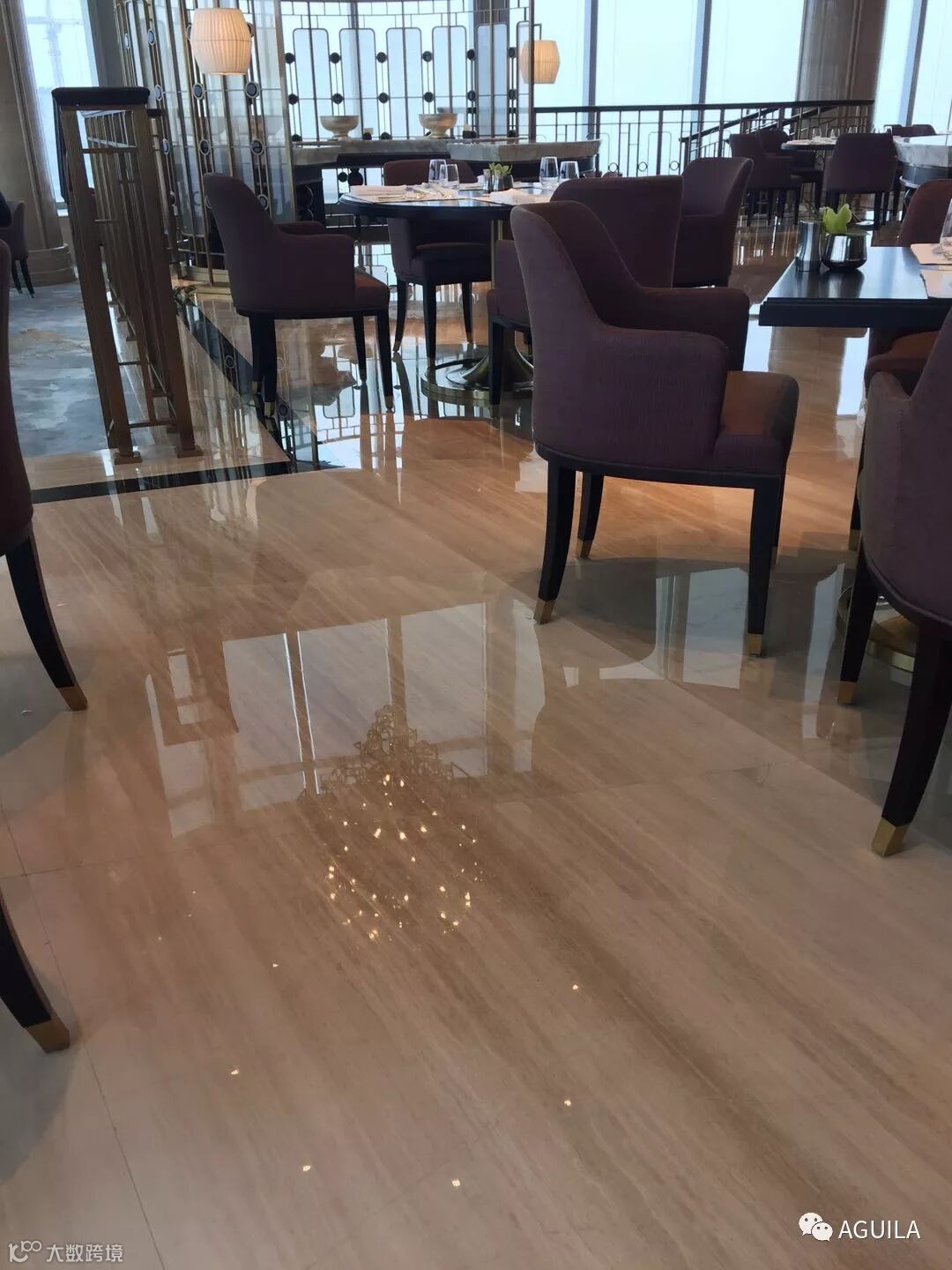 使用钻石研磨片从粗至细进行打磨,在研磨时,既可使用干磨也可使用湿磨,但湿磨时应尽量减少用水量。还可使用“水性防护剂”并加入适量的水进行研磨;同时分别打磨至50#和500#时涂刷“溶剂型防护剂”。一直打磨至1000#或3000#,基础光泽度不低于65度,然后使用《CR-1T 石材打底晶面处理剂》打底,再用《CR-2T 石材晶面处理剂》以增加石材表面的亮度和硬度,以及防水和防滑功能,实现高品质工程效果。