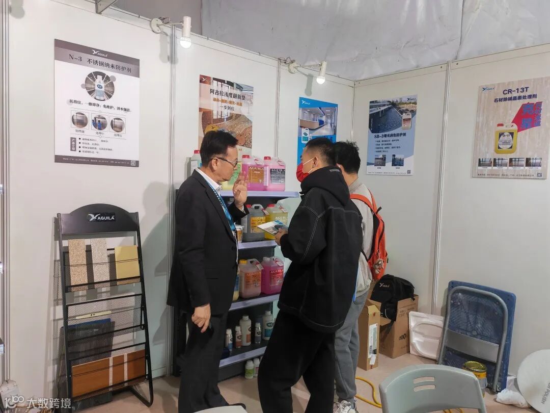 工作人员认真向来宾介绍阿古拉系列产品