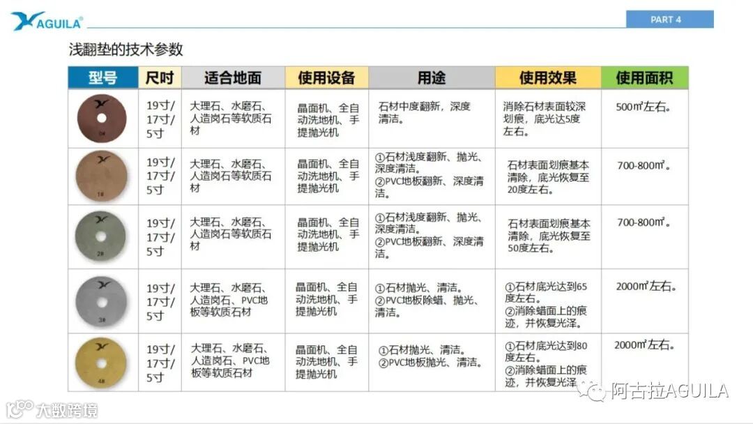 第二步:分别用1~4#浅翻垫进行打磨,尽量将石材底光提高到最大值。