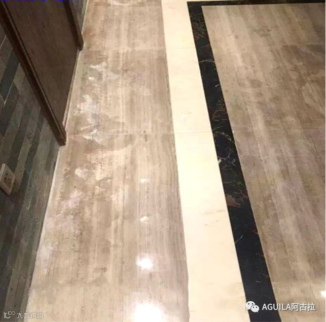 但是由于木纹石属于石灰质含量较高的大理石,材质比较疏松,吸水率较高,导致它特别容易“返碱”,一旦在辅贴、研磨、清洗、日常保养过程中稍有不慎,就会出现返碱问题。