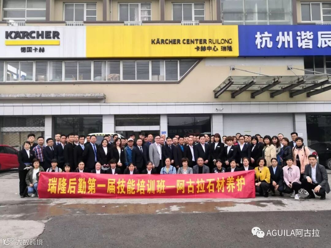 2019年4月29日由西班牙阿古拉大中华区品牌运营中心联合杭州瑞隆后勤服务有限公司一同举办的春季第二场“石材护理晶化系统培训”会正式开班了!近100名酒店和物业保洁公司的中高层管理人员参加了此次培训会。