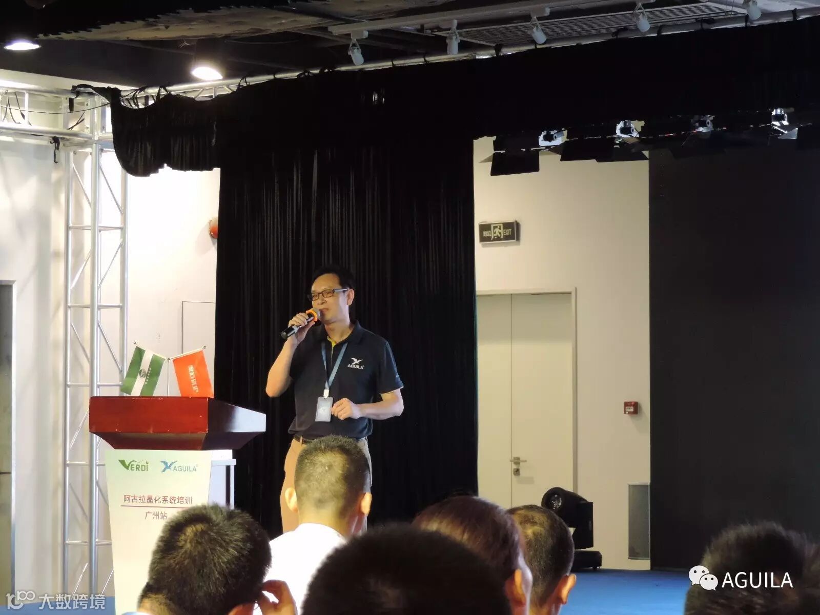 早上9:00培训活动正式开始,首先是由广州韦尔狄建筑装饰工程有限公司詹政发总经理和西班牙阿古拉(大中华区)陈俊杰总经理向各位来宾致欢迎词。