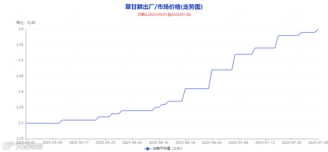 供应端:有业内人员表示,今年上半年,甘氨酸、黄磷的价格因环保限产,水电供应波动导致价格大幅上涨,从而导致企业原料成本大幅攀升,迫使部分中小产能因亏损被迫停车,行业整体开工率持续走低,同时又叠加美国巨头孟山都停产传闻扰动影响,在“低库存+订单饱满”的背景下,头部企业(如兴发集团、新安股份)主动采取“限量发货”策略,部分企业甚至发布“8月暂停接单”通知,进一步推升了市场惜售情绪,推动价格上涨。