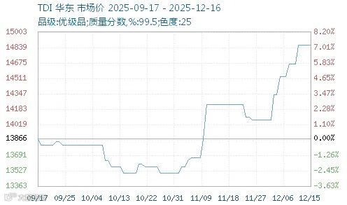 本次MDI集体涨价幅度较大,预计将进一步刺激TDI的替代需求,带动TDI价格同步走强。自12月初以来,国内TDI市场价格正稳步上行,月内价格涨超800元/吨。