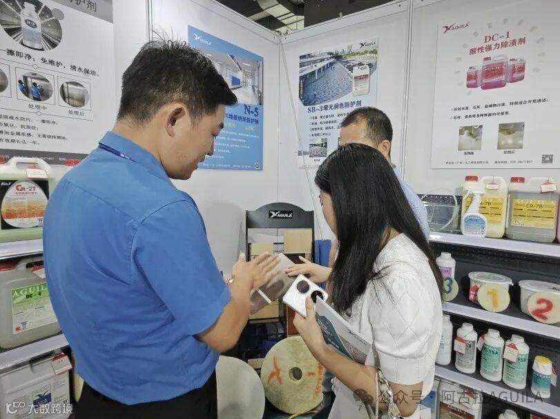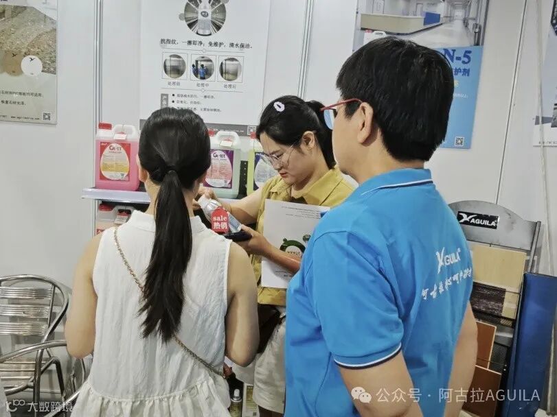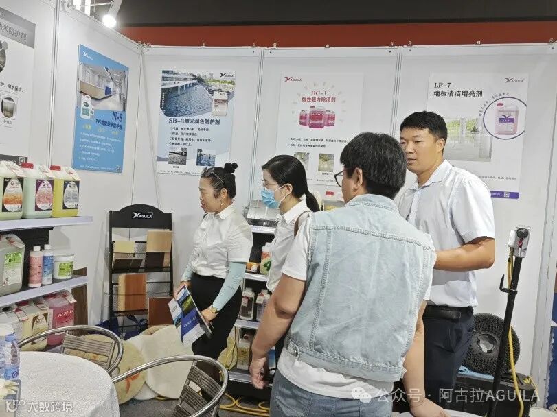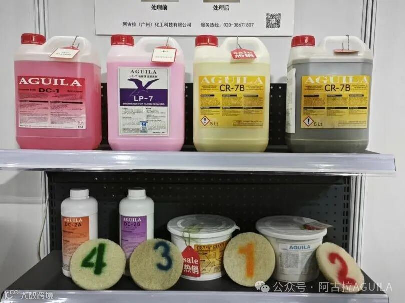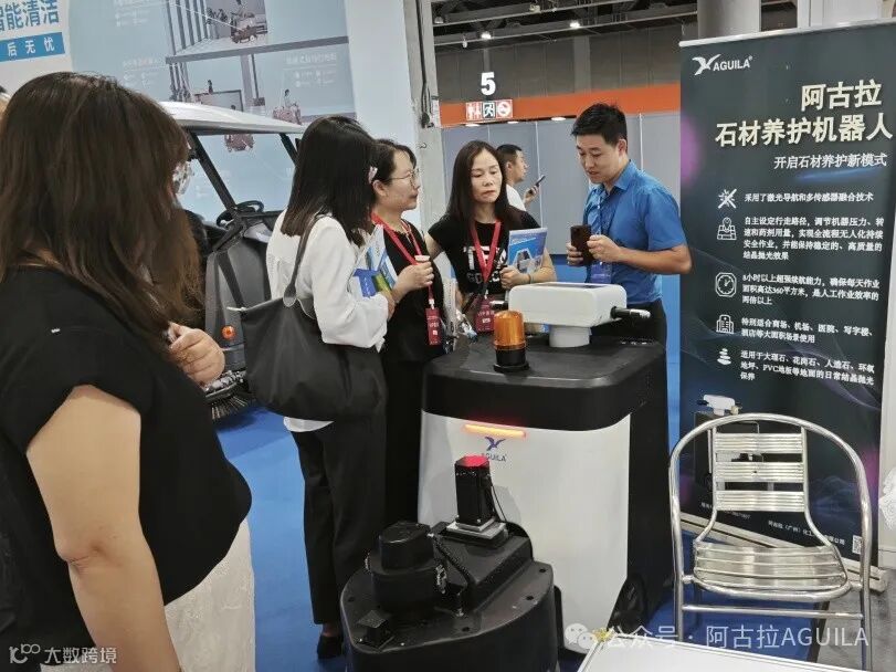 本次展会阿古拉推出了两款新产品,分别是阿古拉石材养护机器人和LP-7地板清洁增亮剂。