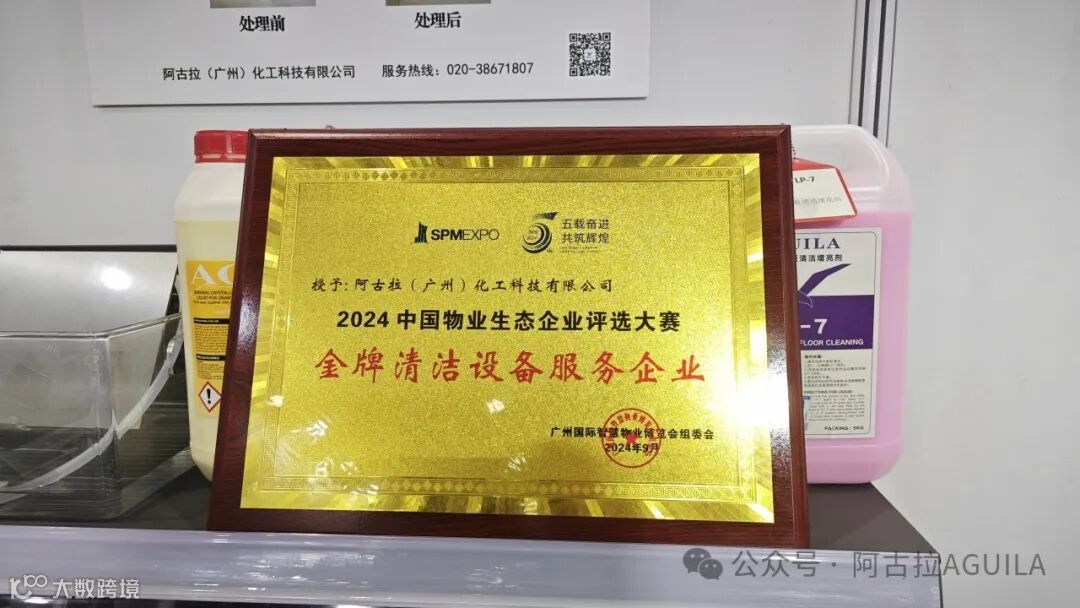 经广东省和广州市物业管理协会供应链生态专业委员会评选,本公司被评选为2024年中国物业生态企业评选大赛金牌清洁设备服务企业。