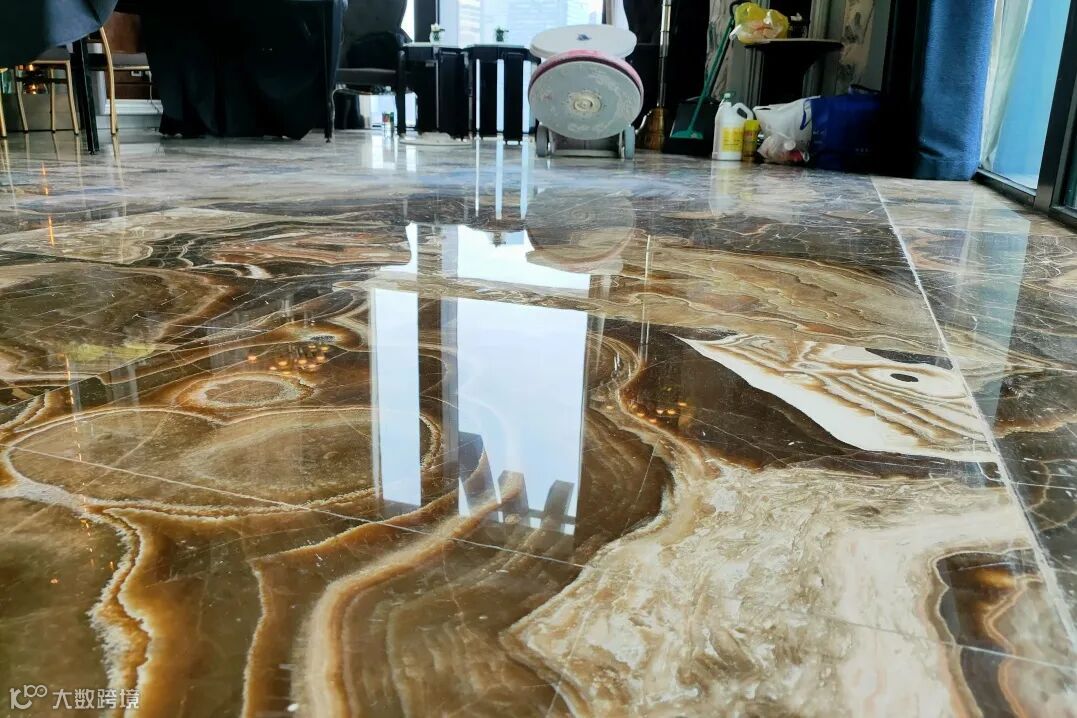 第二,大理石出现“橘皮”现象。大理石主要的成份是碳酸钙,对酸性物特别敏感,如果大理石经常性使用酸性过高的结晶剂进行日常保养,就会导致大理石出现酸蚀症状,俗称“橘皮”,如此大理石就要通过翻新才能把凹凸的表面打磨平整,恢复大理石光滑的表面。