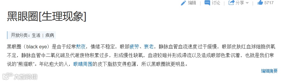 至于黑眼圈的形成原因,百度百科给出的官方解释如下: