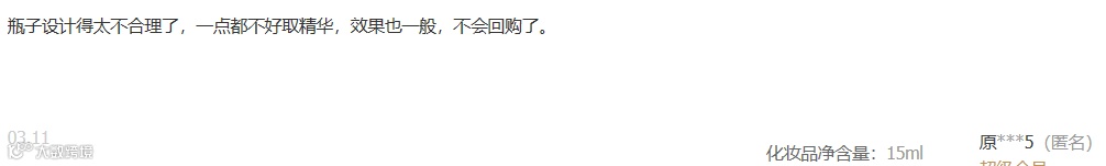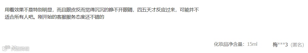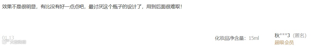 而反观小姐姐吐槽的眼霜没效果,可能也是因为眼霜没有起到很好的效果,同时这个牌子的眼霜的取用棒子设计非常不合理,不能挤压吸取,纯蘸取模式,每次蘸取量非常少,而且用到最后瓶子中只剩少量,蘸取棒完全蘸取不到,很是浪费!