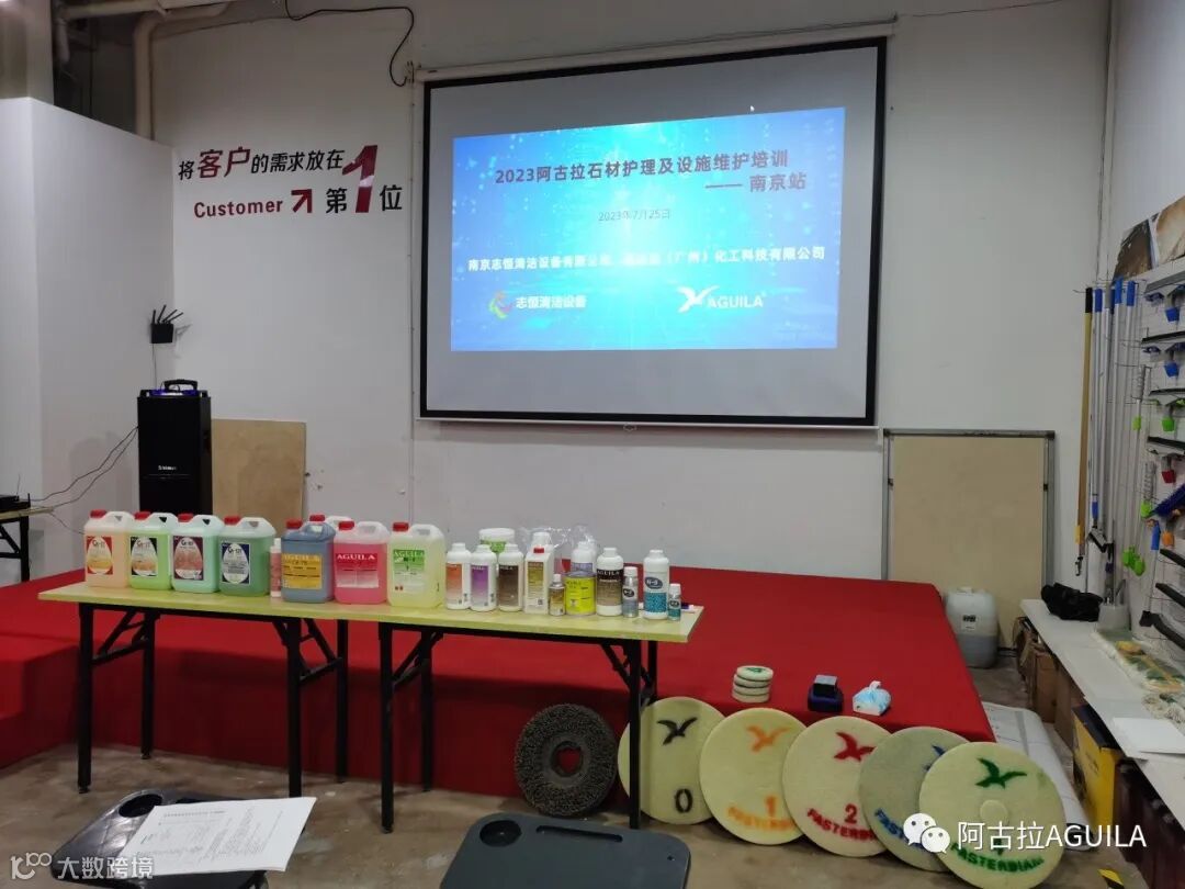 2023年7月25日,南京志恒清洁设备有限公司与阿古拉(广州)化工科技有限公司共同举办了“2023年阿古拉石材护理及设施维护培训”,本次培训旨在提升南京地区物业保洁公司的石材护理水平,促进行业之间的交流。