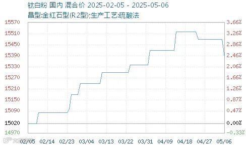 累计来看,一季度钛白粉价格对国内客户上涨了1100元人民币/吨,对国际客户上调了170美元/吨,整体涨价幅度约为8%左右。百川盈孚数据显示,截至今年3月,金红石型钛白粉在国内不同区域报价为15050元/吨~15200元/吨;锐钛型钛白粉在国内不同区域报价为12500元/吨~12800元/吨。