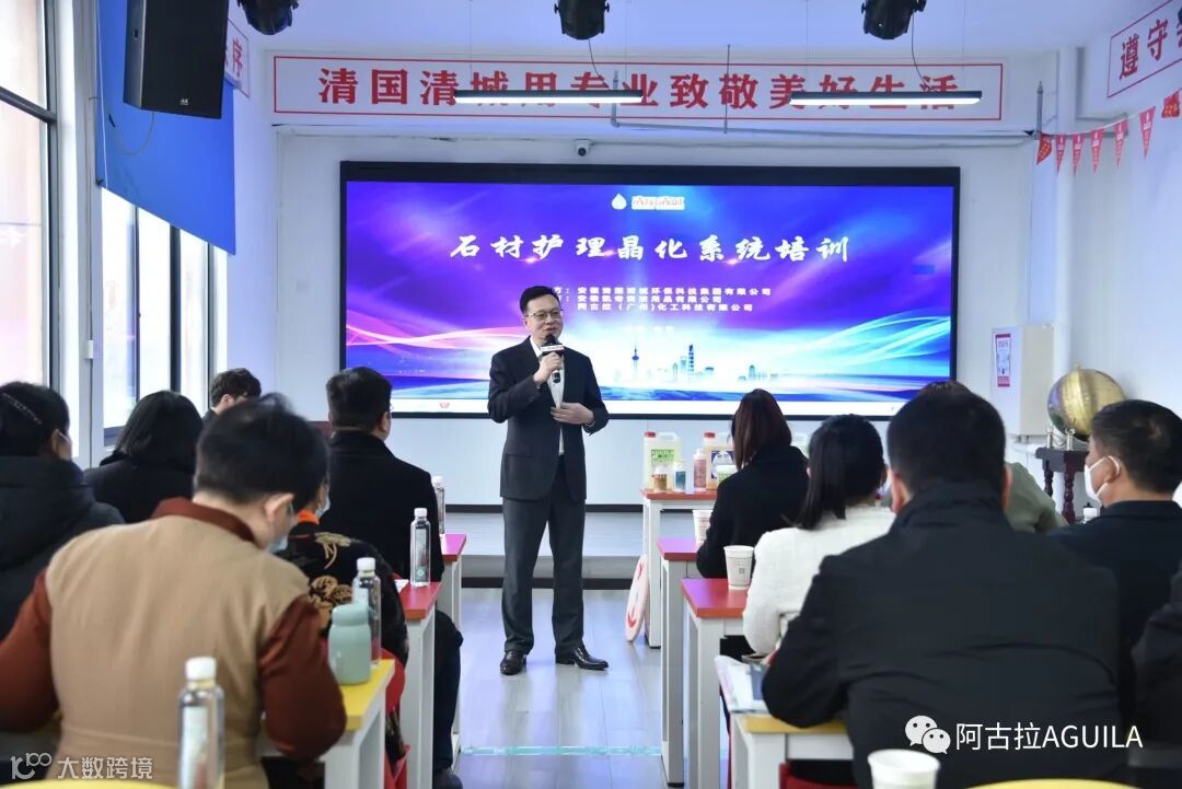 为了提升合肥地区的石材护理水平,由安徽清国清城集团主办,安徽凯奇清洁用品有限公司和阿古拉(广州)化工科技有限公司协办的“西班牙阿古拉石材护理晶化系统培训”于3月23日在合肥如期举行。