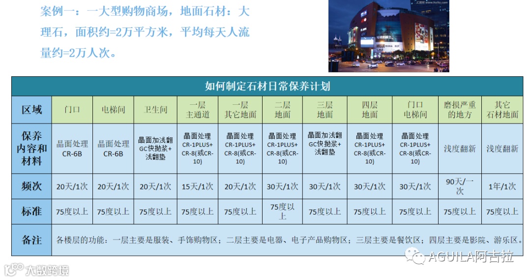 四、根据石材的运用场景、结合七个方面的因素,制订详细的石材保养方案。