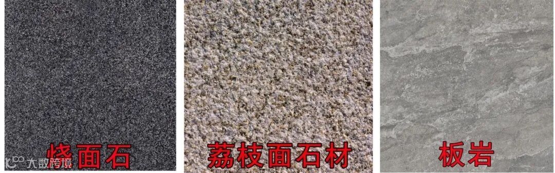石材经加工处理后呈现粗糙和凹凸不平的表面,且没有光泽,这种板材统称为毛面石材,常见的毛面石有火烧面、荔枝面、板岩等。