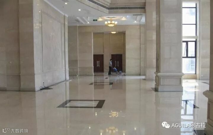 酒店、商场、写字楼等营业场所,常常因为人员不足或费用问题,导致石材未能得到及时的维护和保养,使石材表面受到严重的磨损。当光泽已下降到30度时,则无法通过结晶处理的方式使大理石达到75度以上的标准亮度,故此要使石材恢复到该标准亮度时,必须通过研磨翻新的方式来处理。