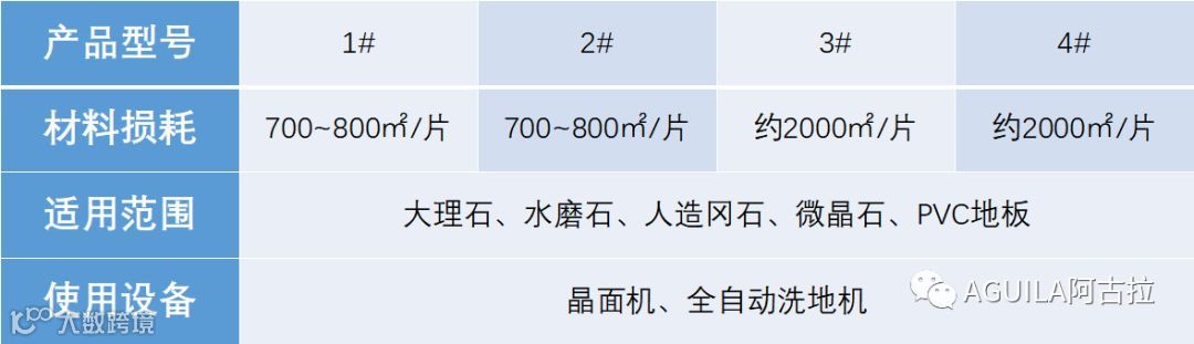 功能:想达到深度清洁及产生一种柔光效果,可以选择使用2#,其具有深度清洁/柔光的清洁效果,在一些大型工业和商业场所较为普遍使用。