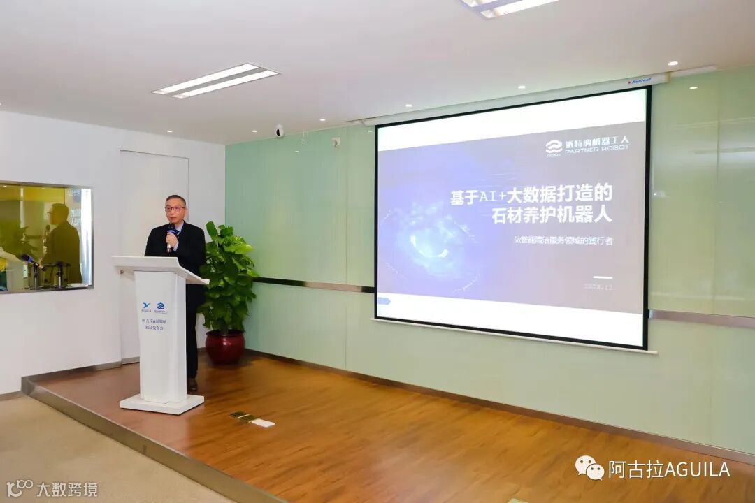 他殷切地希望:通过阿古拉和派特纳两家公司在石材养护机器人商用领域应用和推广的深度合作,运用新技术、新产品、新模式达成石材保养标准化和质量全流程管控,从而实现降本增效的目标,并期待我们不断创新,为用户提供更先进、更优质、更完美的产品,为物业管理等行业科技化、数字化、智能化的发展贡献力量。