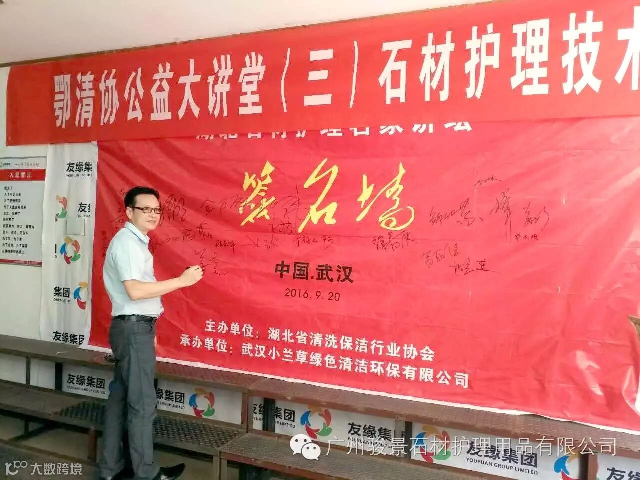 2016年9月20日,西班牙阿古拉(中国)有限公司总经理陈俊杰先生应湖北省清洗保洁行业协会邀请,以研讨会主讲嘉宾的身份,参加了由湖北省清洗保洁行业协会主办,武汉小兰草绿色清洁环保有限公司承办的鄂清协公益大讲堂(三)石材护理技术研讨会,于上午9点研讨会准时开始。